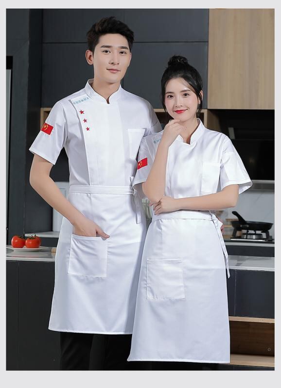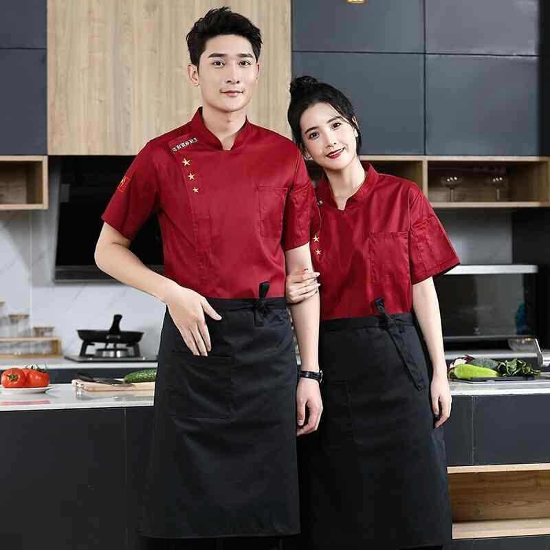 コックコート シェフ服 メンズ レディース 男女兼用 半袖 調理服 作業着 ホテル レストラン 飲食店 厨房 食堂 ベーカリー 通気性 吸湿速乾 綿混 ユニフォーム 春夏 ホワイト レッド ブラック