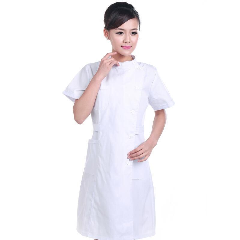 白衣 レディース 半袖 スタンドカラー ナース服 看護師 美容 エステ 薬局 病院 クリニック 研修生 ユニフォーム ワークウェア 吸湿速乾 綿混素材 春夏 ホワイト