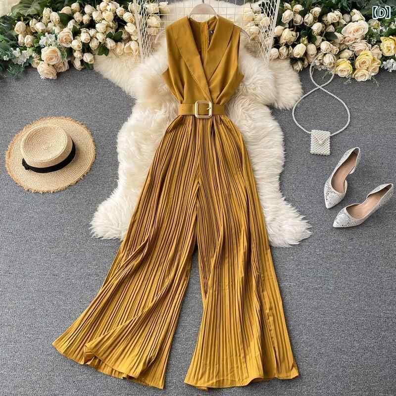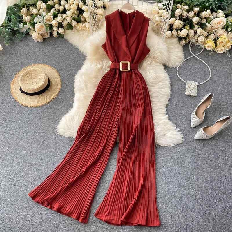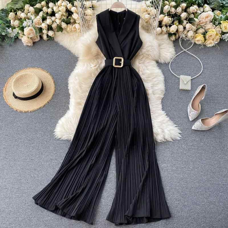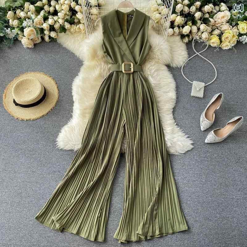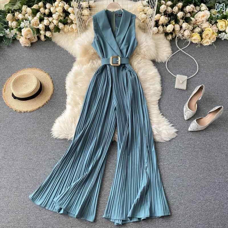オールインワン レディース フレンチレトロ ウエストマーク 細見え エレガント オフィス OL テーラードカラー ハイウエスト ワイド フレア おしゃれ 春夏 通勤