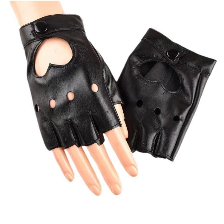 指なし手袋 レディース ハーフフィンガーグローブ PUレザー 合成皮革 ハート柄 型押し パンク ストリート ロック ダンス 舞台 ナイトクラブ 夏
