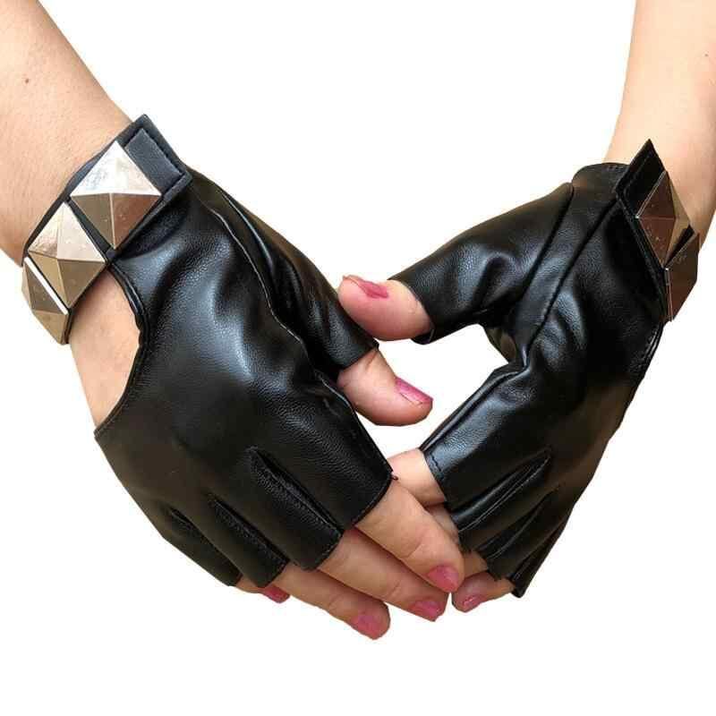 手袋 男女兼用 フェイクレザー スタッズ 指なし ロック パンク ダンス ストリート ステージ衣装 パフォーマンス ナイトクラブ バー ライブ グローブ ブラック
