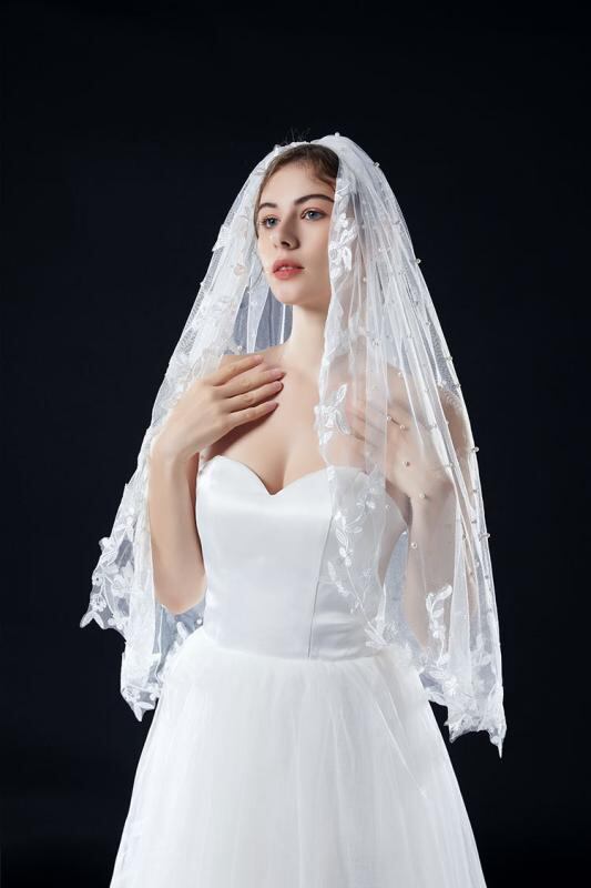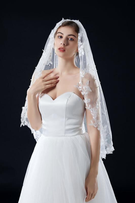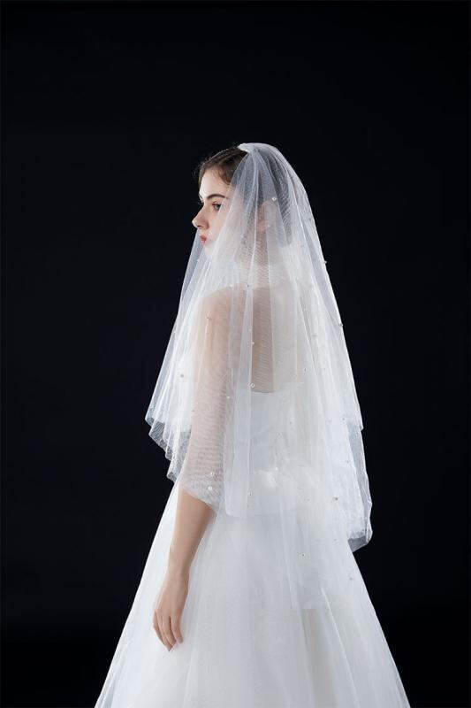 ヘアアクセサリー レディース ウェディングベール 結婚式 ブライダル 挙式 披露宴 パール レース ホワイト ダブルレイヤー 前撮り フォトウェディング 撮影用小物 髪飾り エレガント 上品