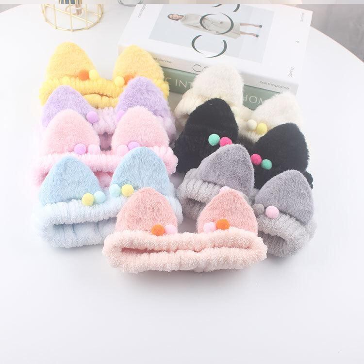 ヘアバンド レディース 猫耳 立体ファー ポンポン付き かわいい 洗顔 メイクアップ 髪飾り 髪留め ソフト ヘアアクセサリー カチューシャ 多色展開