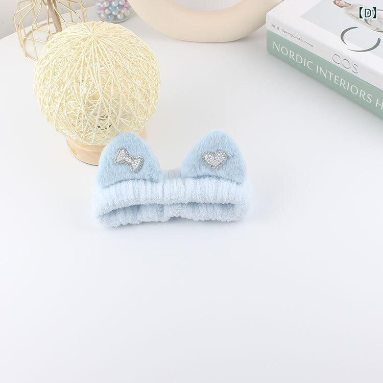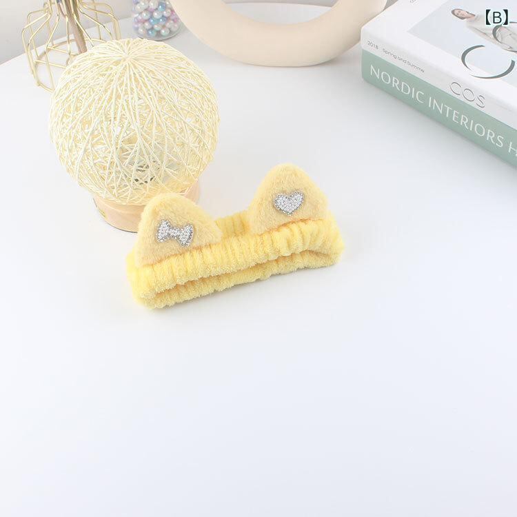 ヘアバンド レディース ラインストーン ミニハート 立体 モコモコ 猫耳 洗顔 メイクアップ用 お風呂上がり 普段使い おうち時間 ルームウェア ヘッドバンド 布製