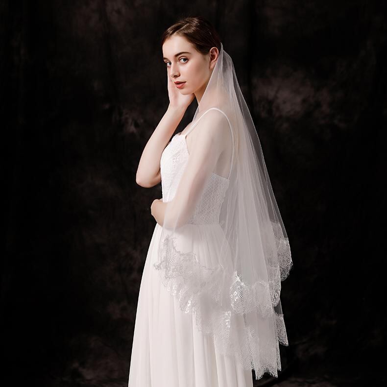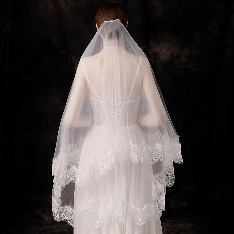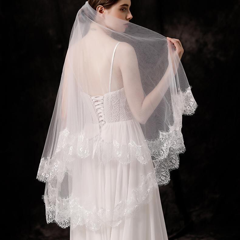 ベール レディース ミドル丈 二層 まつげレース縁 花柄 ウェディング ブライダル 結婚式 花嫁 チュール 披露宴 挙式 ホワイト オフホワイト アイボリー 上品 エレガント アクセサリー 小物