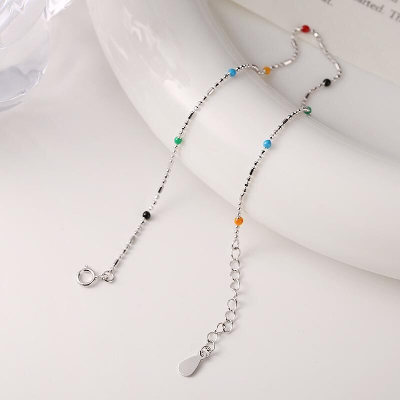 アンクレット レディース S925 シルバー スターリングシルバー 個性的 デザイン レインボー ビーズ カラフル エポキシ樹脂加工 足元 アクセサリー 普段使い カジュアル おしゃれ