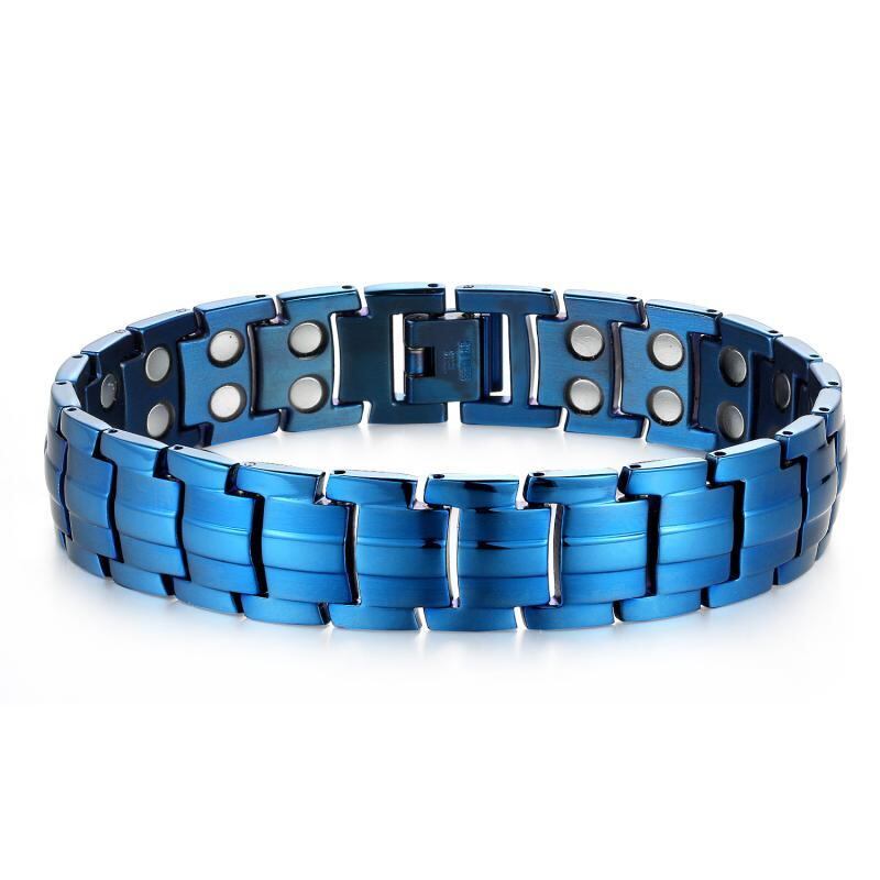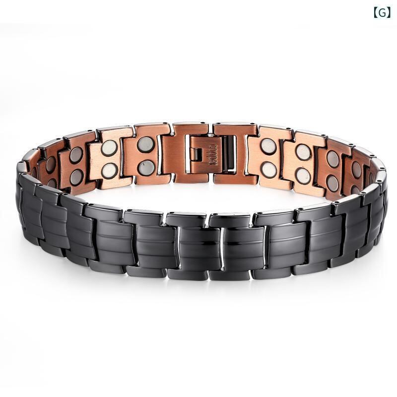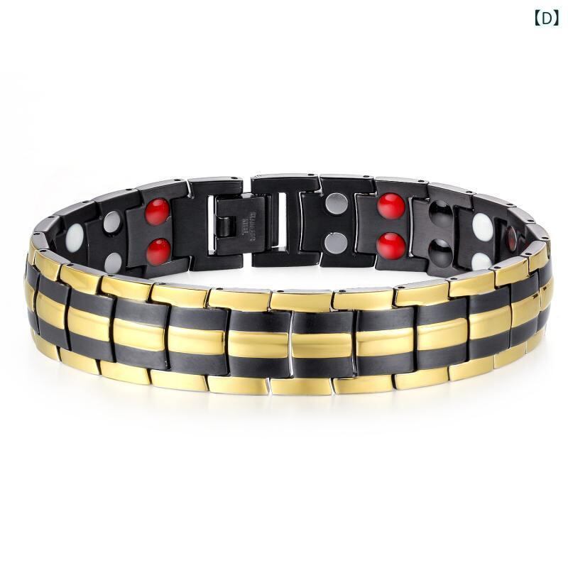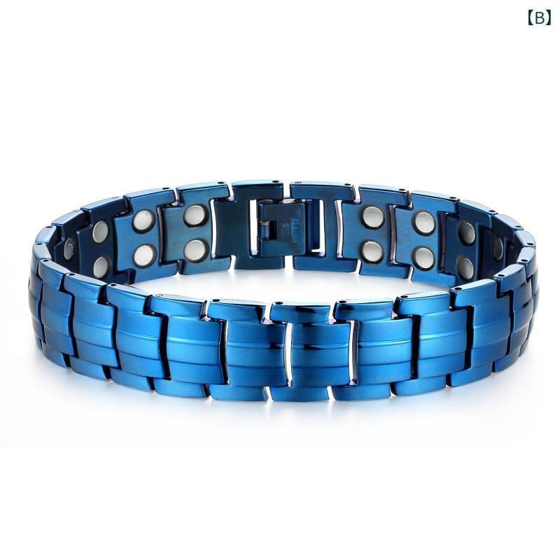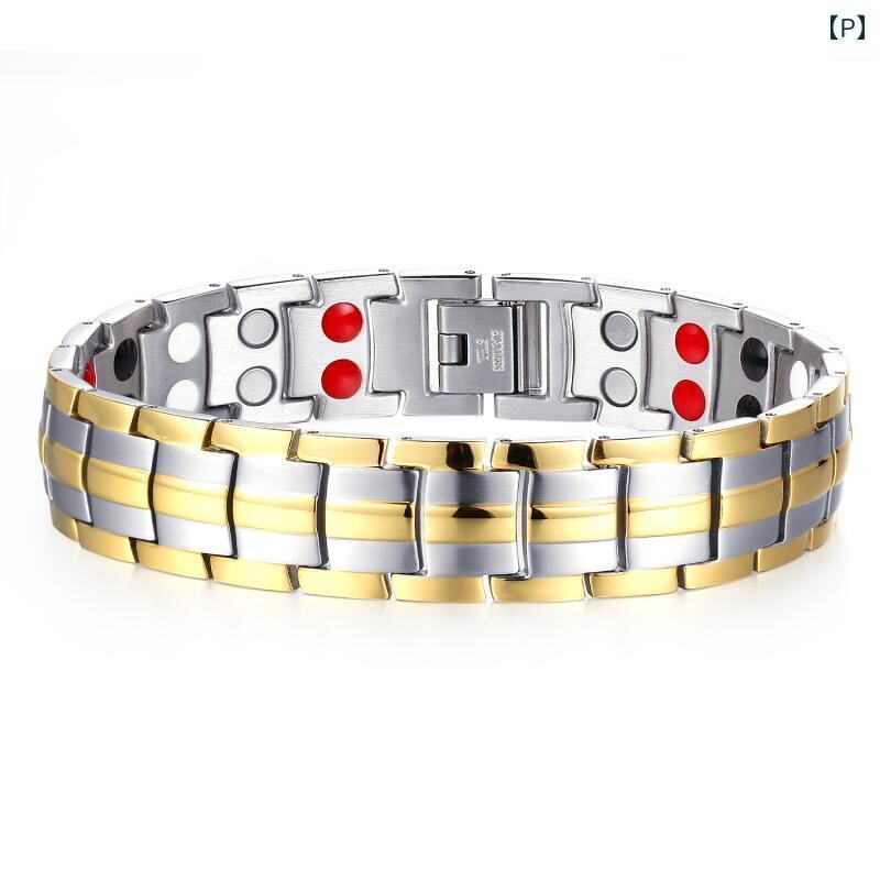 ブレスレット メンズ 男性用 負イオン 磁気 磁石 チタン鋼 着脱可能 ダブルライン 幾何学デザイン 電気メッキ加工 パンクスタイル ファッションアクセサリー