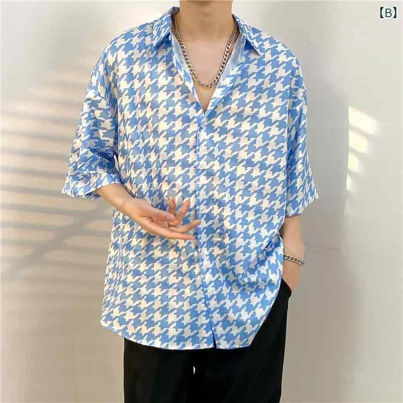 シャツ メンズ 半袖 ゆったり ルーズフィット 開襟 トップス カジュアル ストリート ファッション 春夏 ポリエステル ウォッシャブル ノーアイロン ブラック ブルー