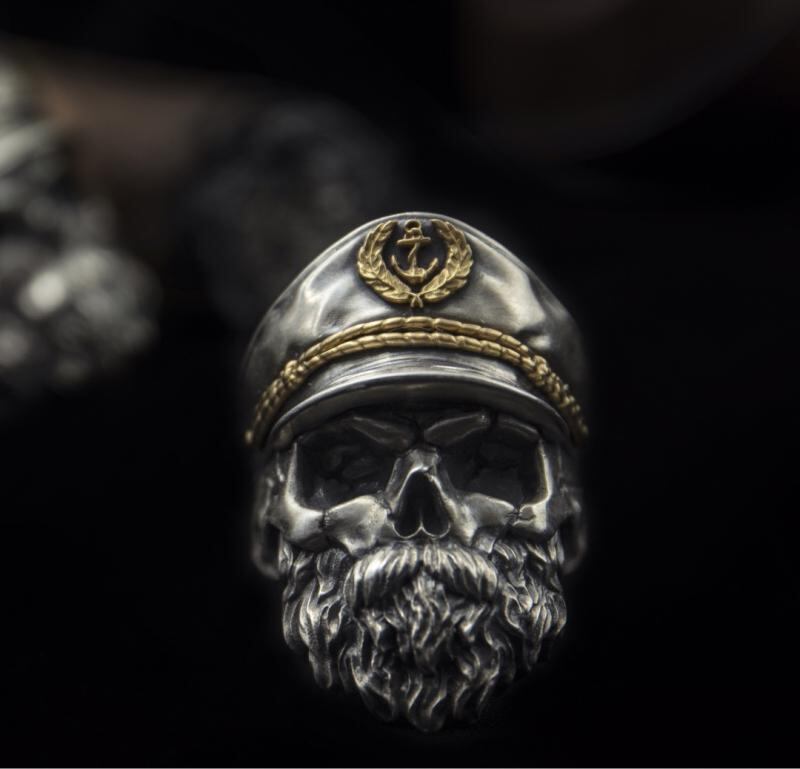指輪 メンズ レトロ ヴィンテージ スカル 髑髏 ハット 髭 錨 船長モチーフ ミリタリー オープンリング 調節可能 合金 ポリッシュ仕上げ 不朽 アクセサリー