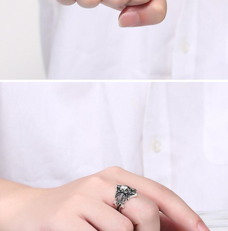 指輪 リング メンズ スカル ゴースト パイレーツ 個性的 ヒップホップ ストリート レトロ 銅製 電気メッキ加工 変色防止 サイズ調整可能