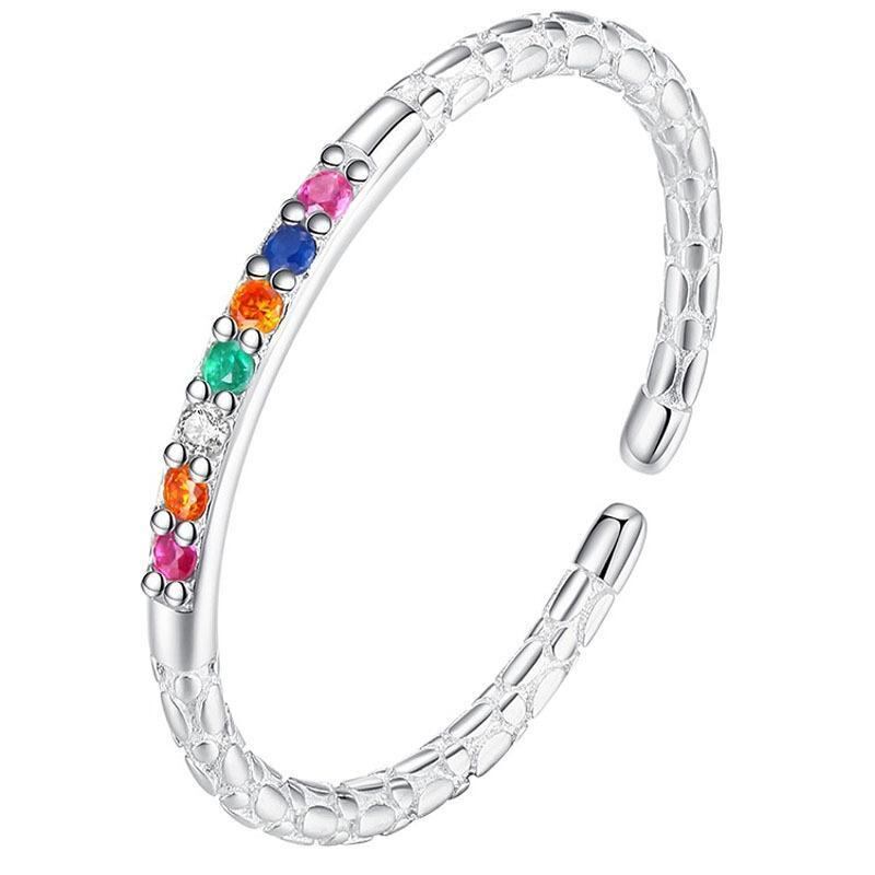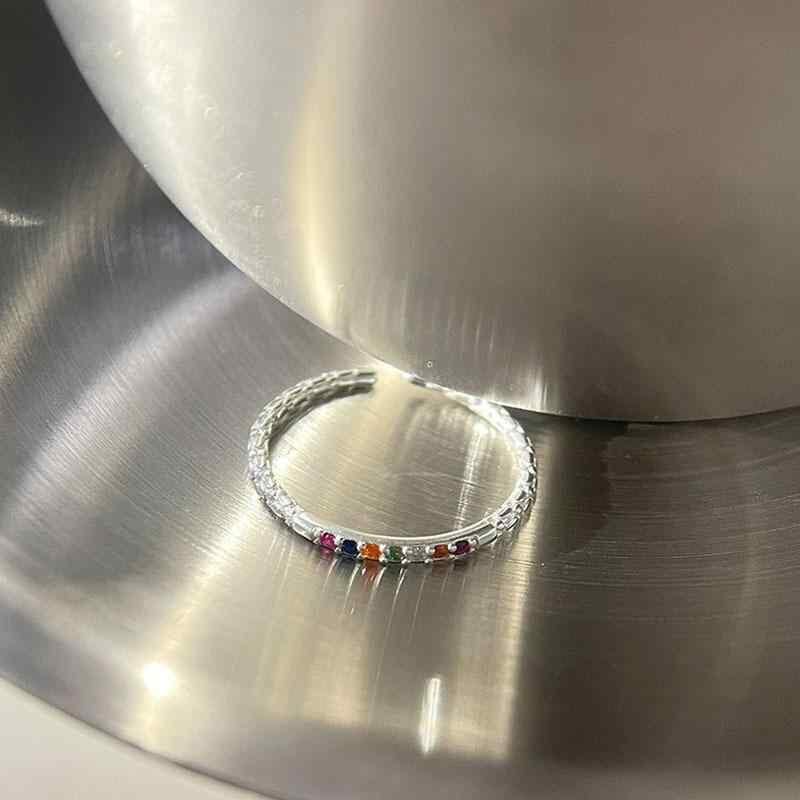 指輪 レディース S925シルバー レインボー 幾何学模様 オープンリング 個性的 デザイン 軽やかな高級感 ファッション おしゃれ トレンド プラチナカラー 電気メッキ加工