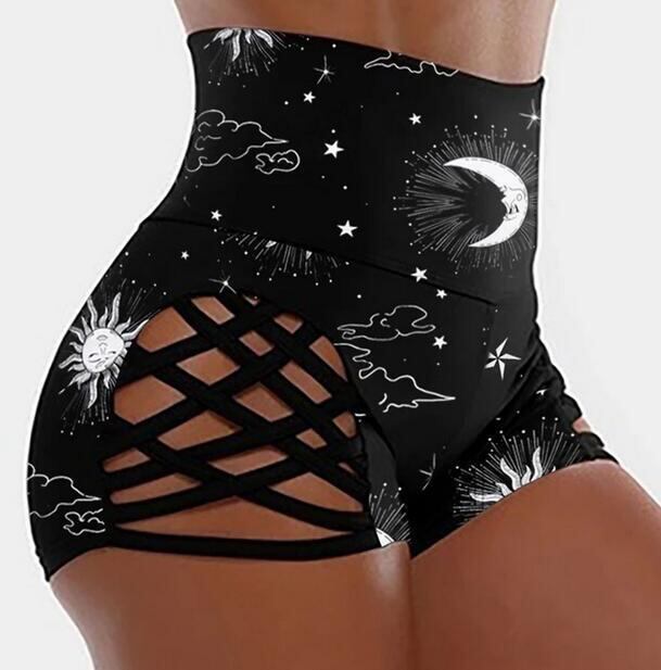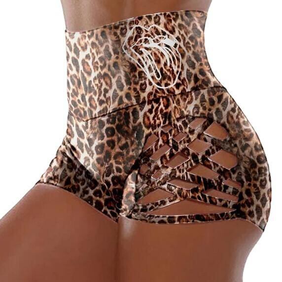 ホットパンツ ショートパンツ レディース ハイウエスト ヨガ フィットネス ダンス スポーツ ポールダンス セクシー 大胆カットアウト サイドクロス 薄手 伸縮性 ポリエステル スパンデックス プリント ヒョウ柄 ブラック レッド ブルー