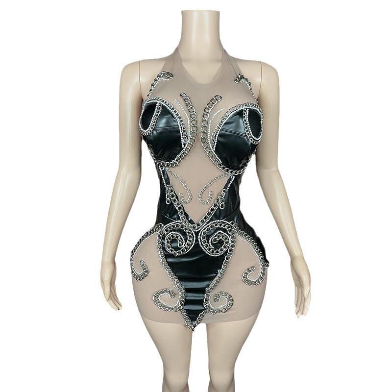 ワンピース レディース セクシー エアリアルヨガ ポールダンス ステージドレス ホルターネック キャミソール ミニ丈 タイトスカート 伸縮性素材 ブラック 欧米スタイル