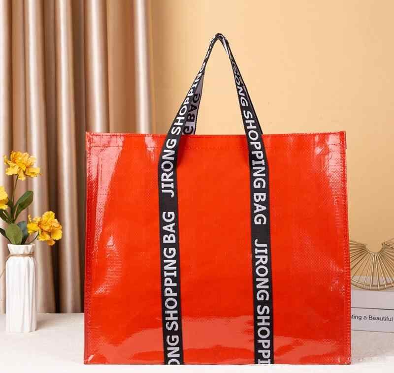 トートバッグ エコバッグ 買い物袋 PP織り 丈夫 カラフル 無地 ラミネート加工 大容量 折りたたみ 立体 収納 ポータブル