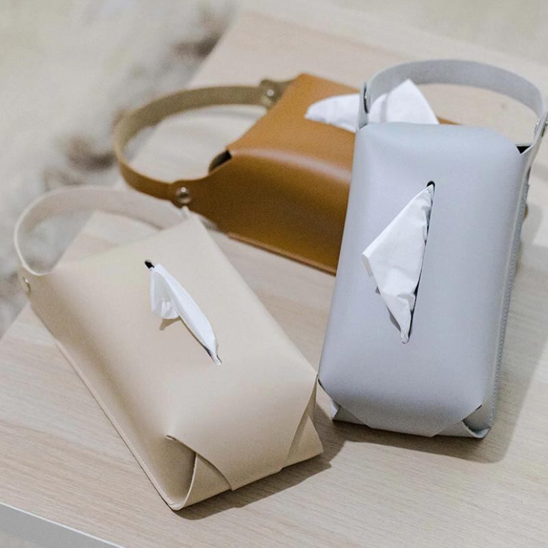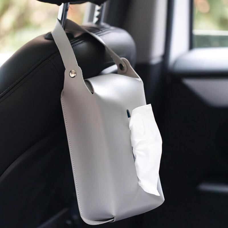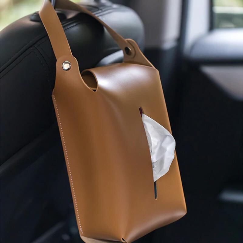 ティッシュケース 車載用 後部座席 吊り下げ ポータブル レザー PU製 防水 多用途 高級感 欧風 シンプル ボックスティッシュ 詰め替え用 ダークブラウン アイボリー ライトグレー アウトドア キャンプ リビング