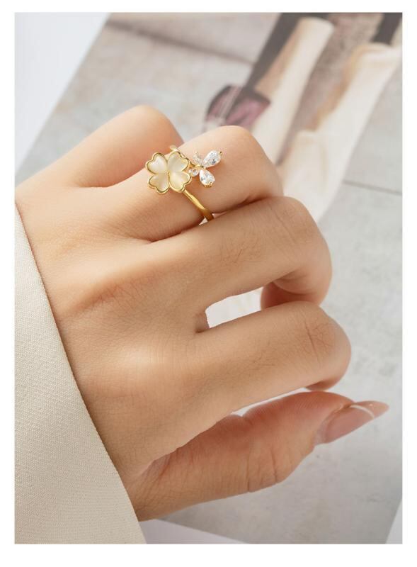 指輪 レディース 開口リング 調節可能 かわいい 花 フラワー 蝶 バタフライ 繊細 個性的 軽やか 上品 人差し指リング 銅製 電気メッキ加工 デイリー カジュアル