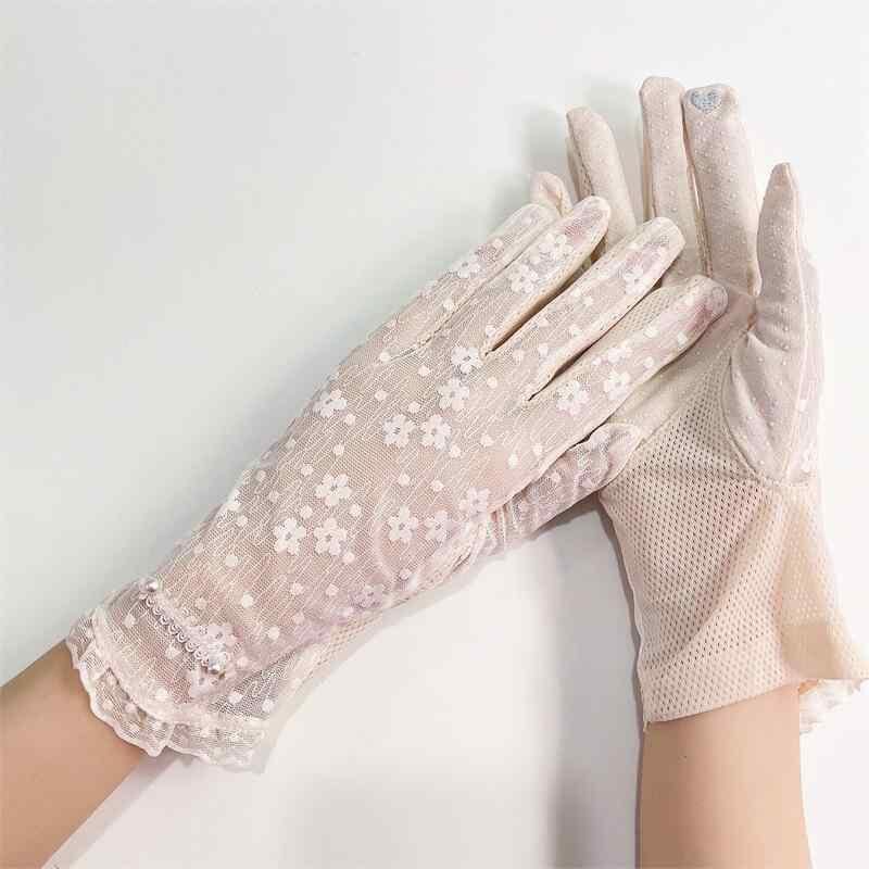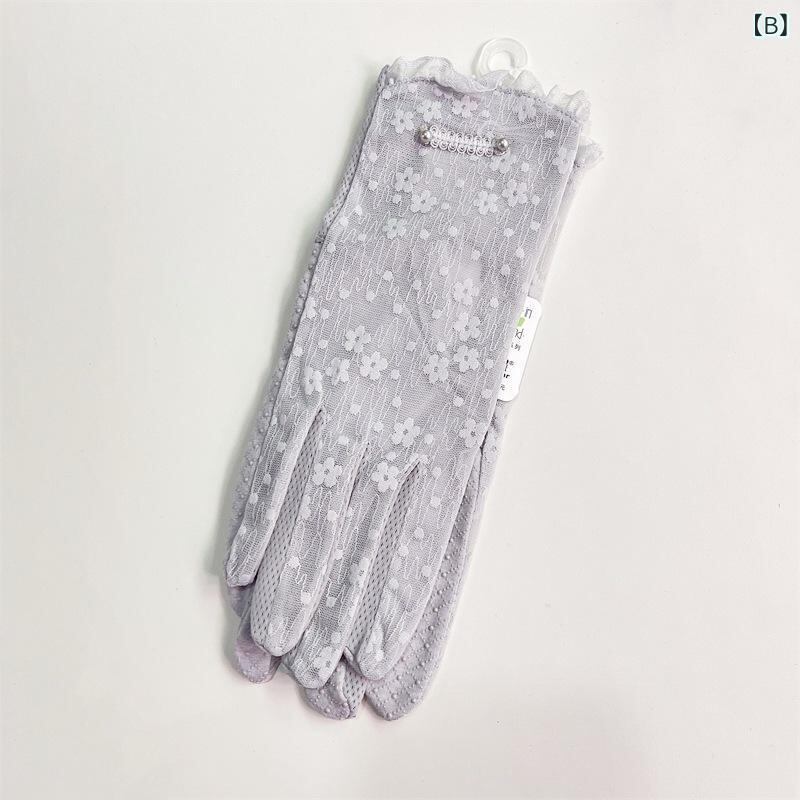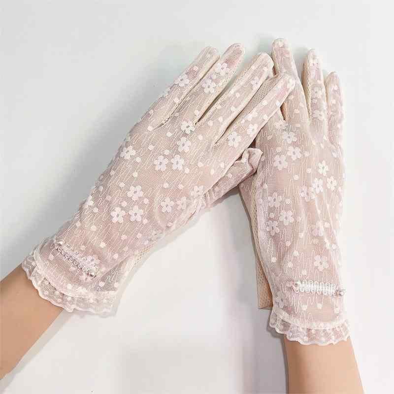 手袋 レディース UVカット 紫外線対策 日焼け止め レース パール付き 薄手 軽量 通気性 滑り止め ロング丈 アームカバー 運転 サイクリング用 春夏