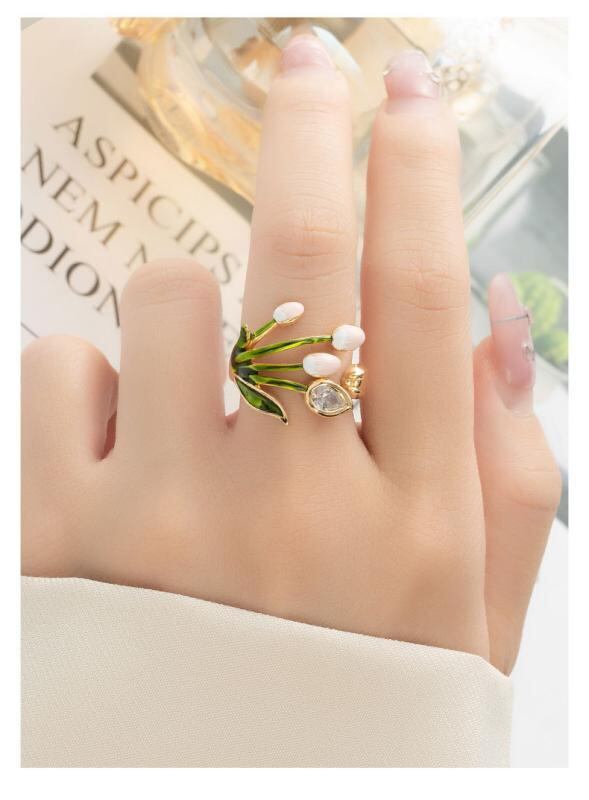指輪 レディース チューリップ ドロップエナメル フリーサイズリング 人差し指リング 上品 エレガント 個性的 フラワーモチーフ オフィス ファッション 普段使い 通勤 銅製 電気メッキ加工