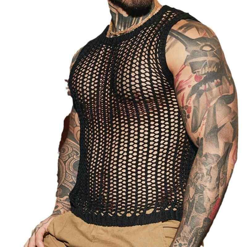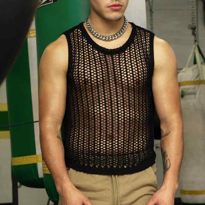 ベストTシャツ メンズ タンクトップ メッシュ セクシー ゆったり ルーズフィット カジュアル ポリエステル 薄手 夏 ストライプ柄 普段使い 着回し ブラック ホワイト
