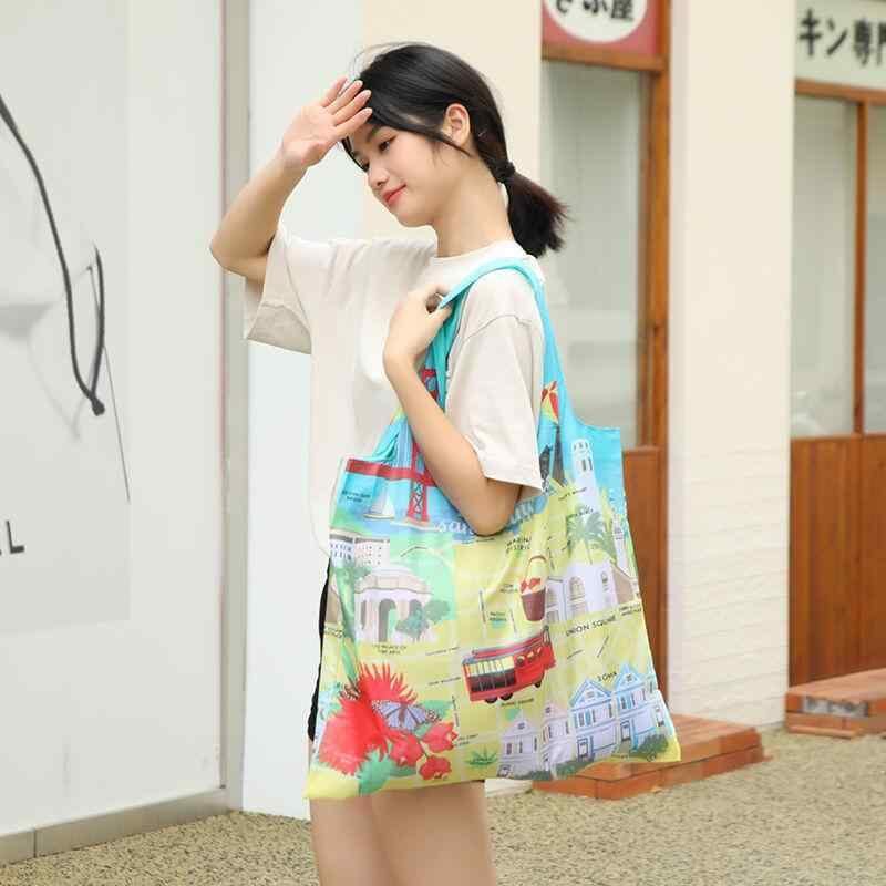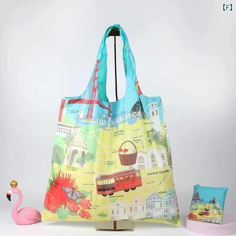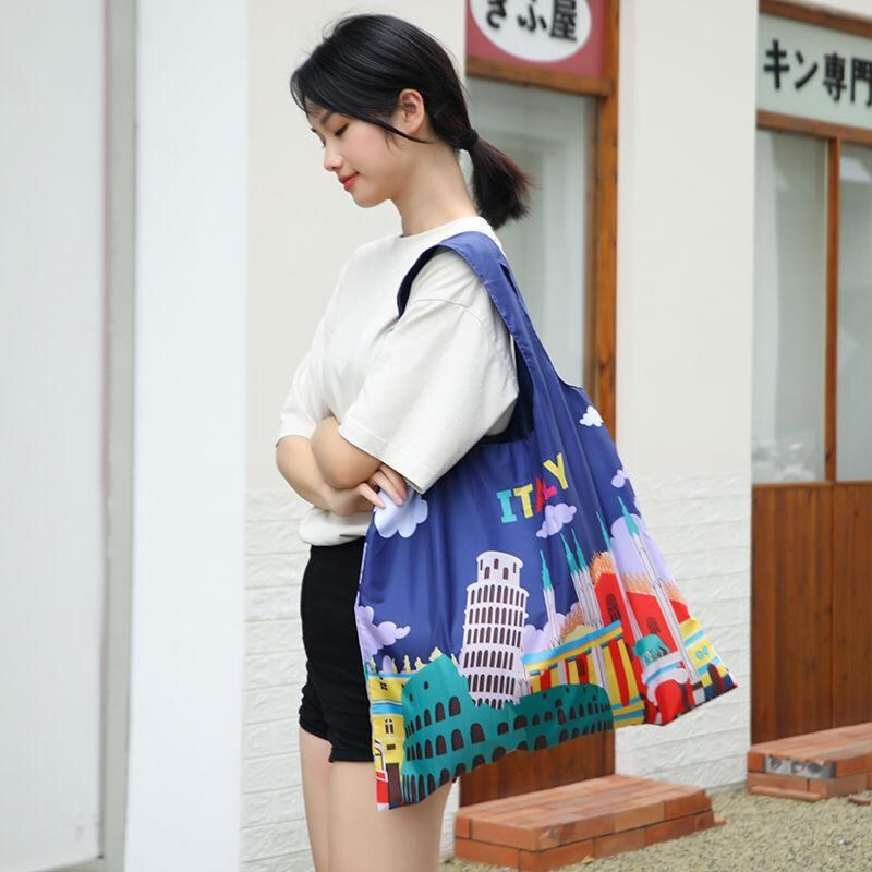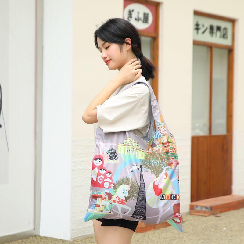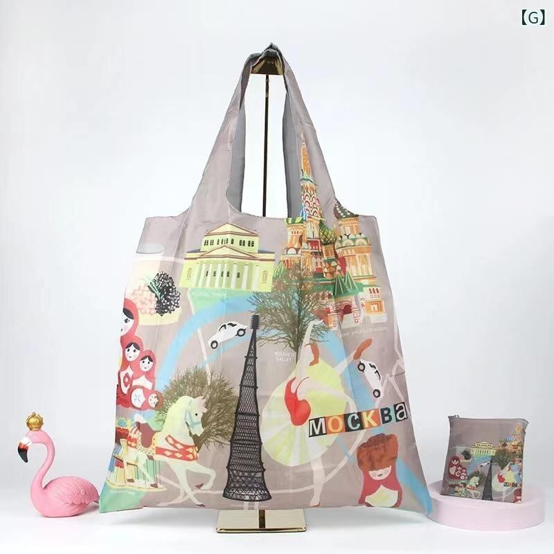 ・カテゴリ: エコバッグ・性別: ユニセックス・スタイル: ファッション欧米風・バッグ形状: 横型大容量・素材: 190Tポリエステル・最大積載量: 約10kg・柄: カートゥーン・カラー展開: クラシック、イタリア、ロンドン、パリ、ニューヨーク、サンフランシスコ、モスクワ