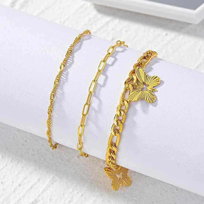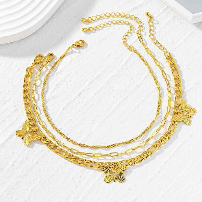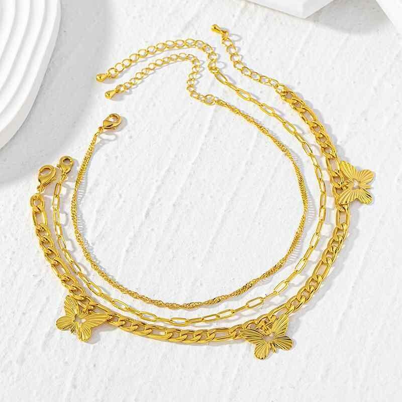 アンクレット レディース 蝶々 透かし彫り アシンメトリー スクエアチェーン 真鍮 金メッキ ゴールド ビーチ リゾート 春夏 個性的 欧米風