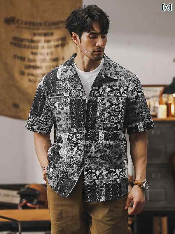 シャツ メンズ 半袖 オープンカラー 接触冷感 シアサッカー 花柄 ボタニカル柄 ゆったり リラックスフィット 薄手 形態安定 綿混 ポリエステル 春夏 カジュアル 普段使い