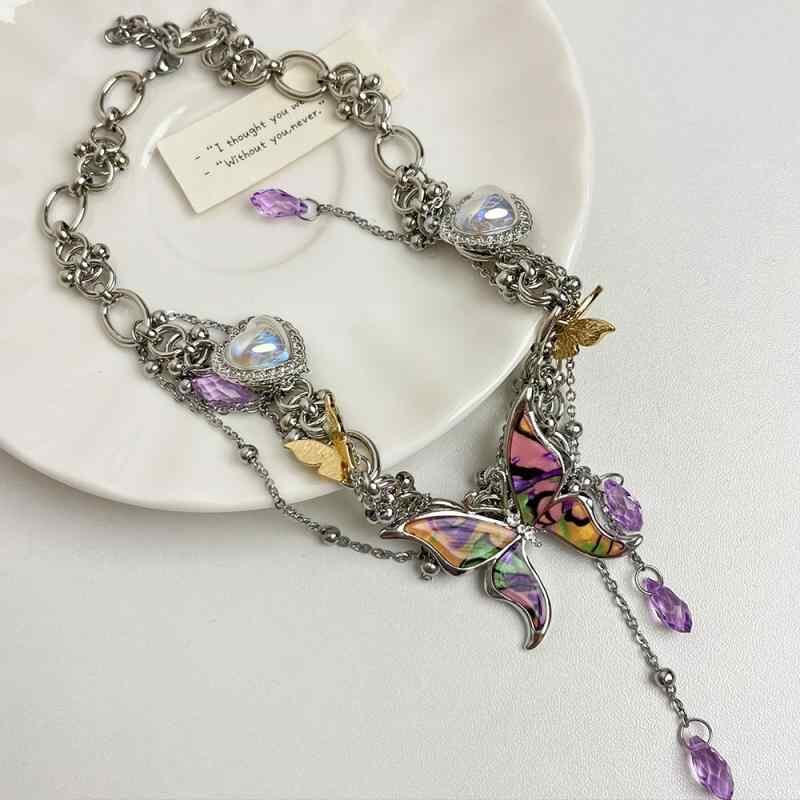 ネックレス レディース Y2K パンク 重厚感 貝殻 蝶 バタフライ フリンジ サブカル 個性的 甘辛ミックス クール チョーカー 鎖骨ネックレス 合金製 春夏