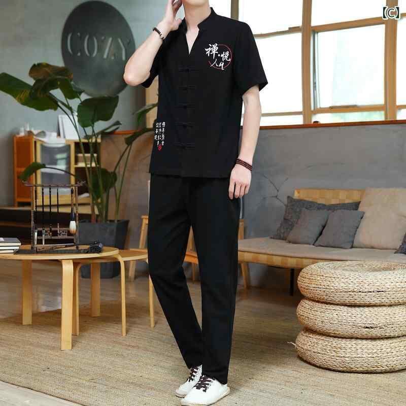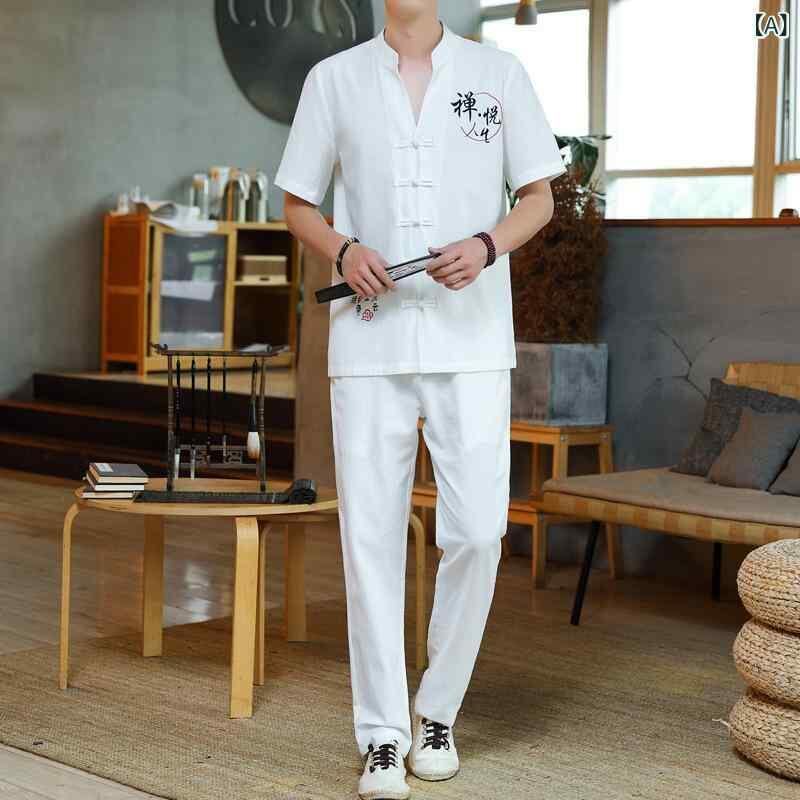 セットアップ メンズ 半袖 Tシャツ ショートパンツ 上下セット 唐装 漢服 中国風 チャイナ風 綿麻 コットンリネン 麻 リネン コットン ポリ混紡 ゆったり リラックス 快適 カジュアル スポーツ 普段使い 部屋着 夏 白 灰色 黒 カーキ