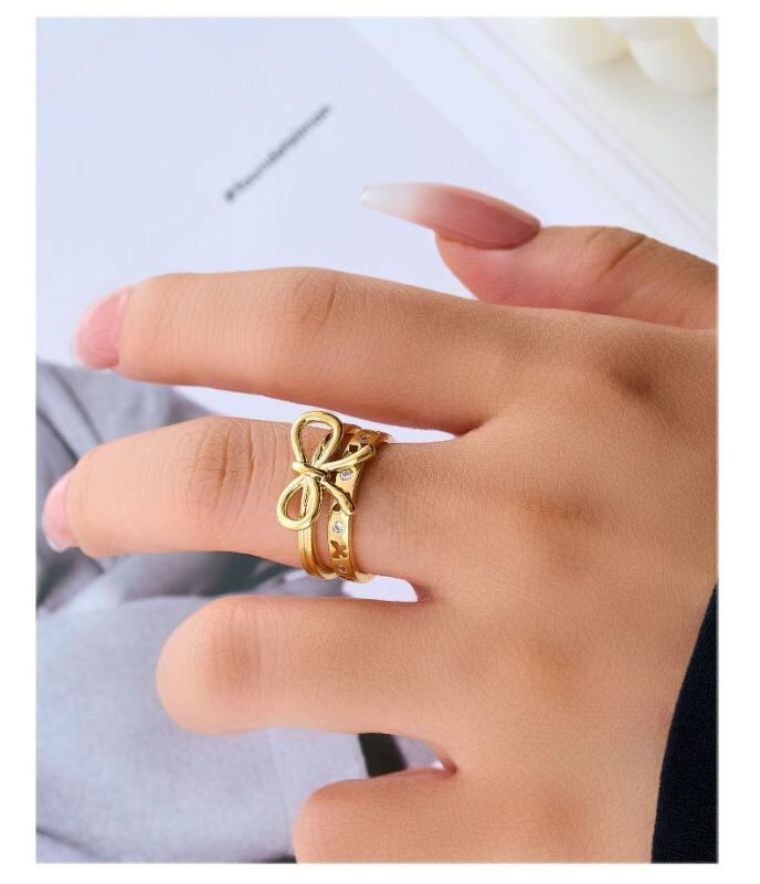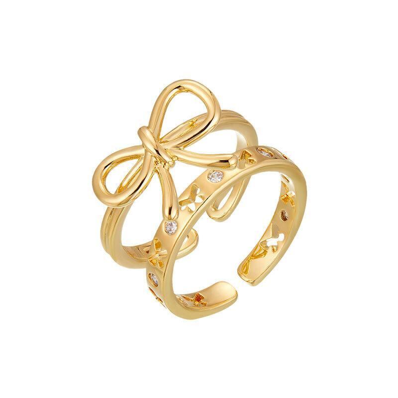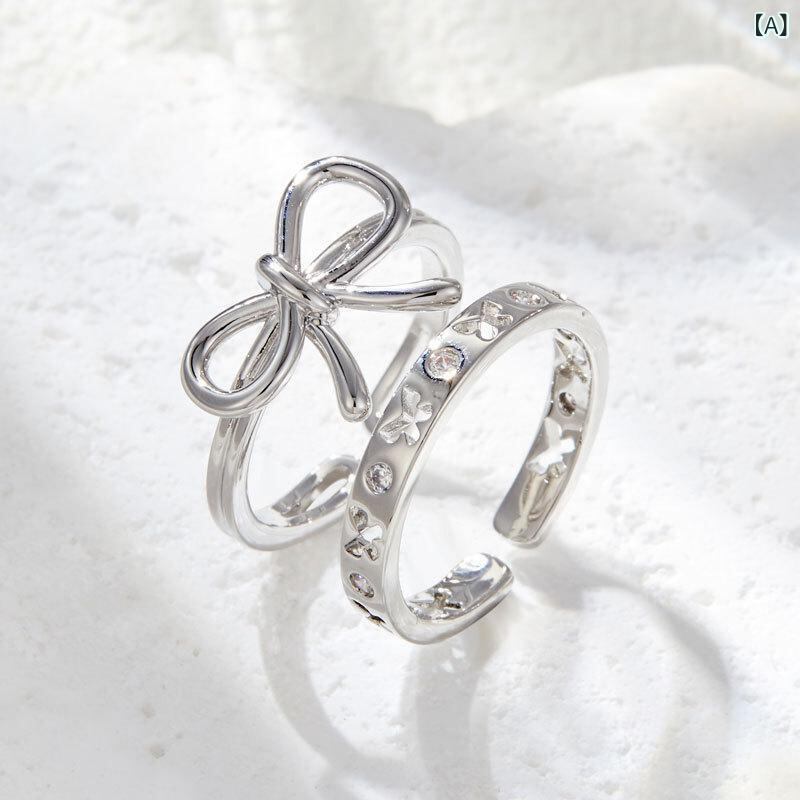 指輪 レディース リボン オープンリング フリーサイズ 調節可能 重ね付け 上品 清楚 フェミニン デイリーユース カジュアル ファッション 銅製 電気メッキ加工 秋冬