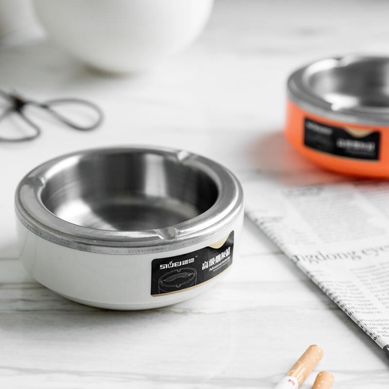 灰皿 二重構造 防風 ステンレス製 家庭用 オフィス 屋内 屋外 リビング 書斎 携帯用 持ち運び コンパクト おしゃれ 韓国風 シンプル デザイン 白 黒 オレンジ 青 緑
