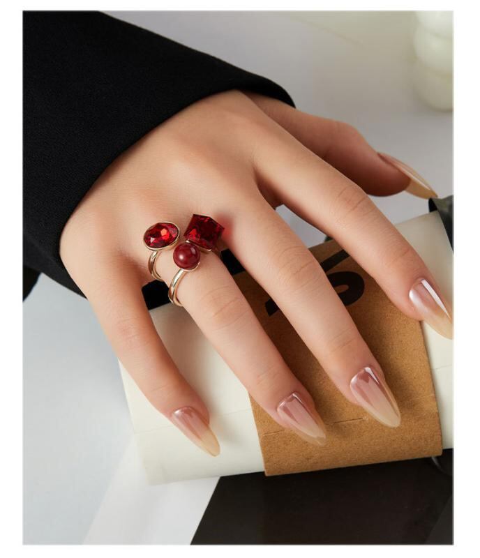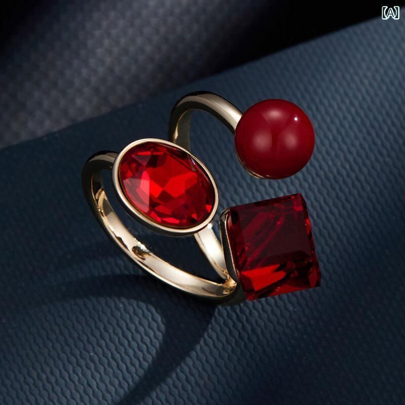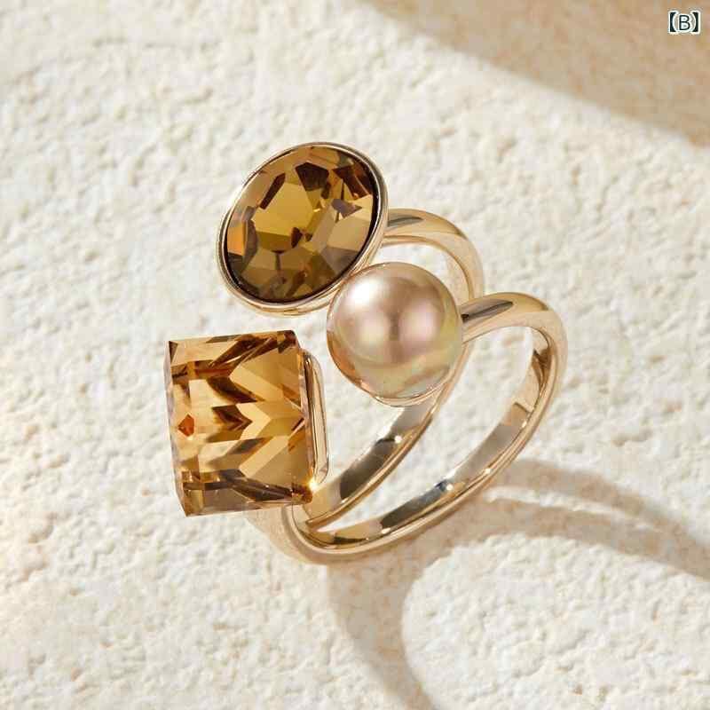 指輪 レディース 女性用 立体 幾何学 デザイン オープンリング 軽やか 高級感 上品 エレガント クリスタル スクエア 四角 人差し指リング フリーサイズ サイズ調整可能 電気メッキ加工 銅製 通勤 オフィス デイリー