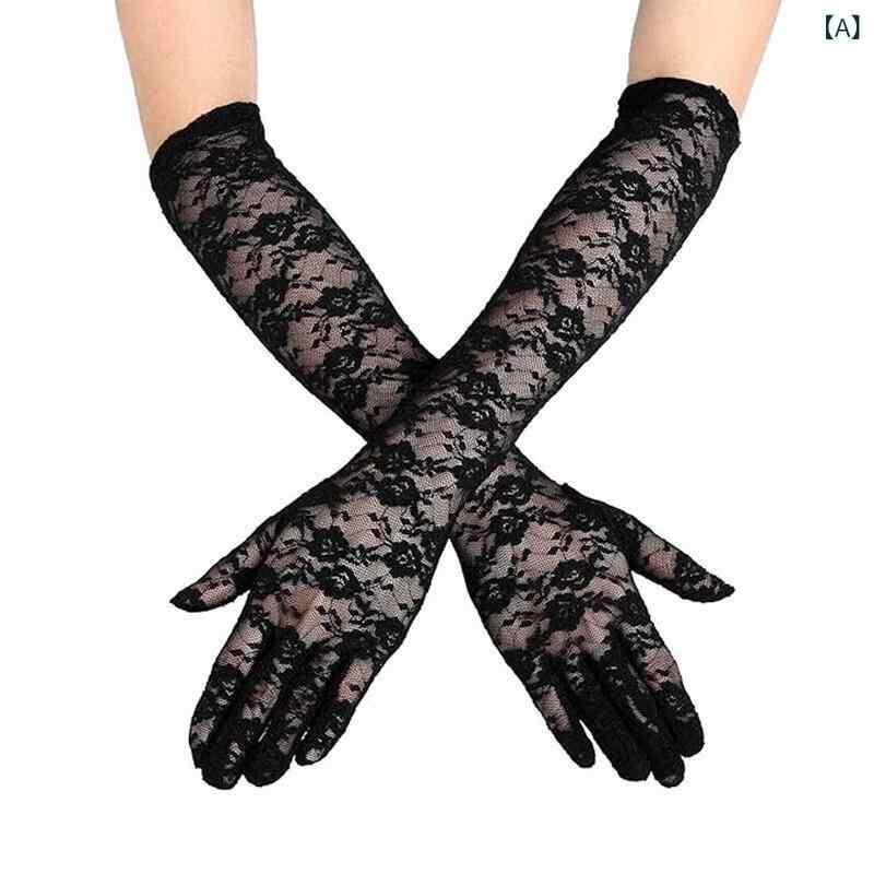手袋 レディース レース 薄手 五本指 UVカット 日焼け対策 春夏 アームカバー おしゃれ プリンセススタイル エレガント ポリエステル 花柄 結婚式 ウェディング ブライダル フォーマル 礼装 ドライブ 運転