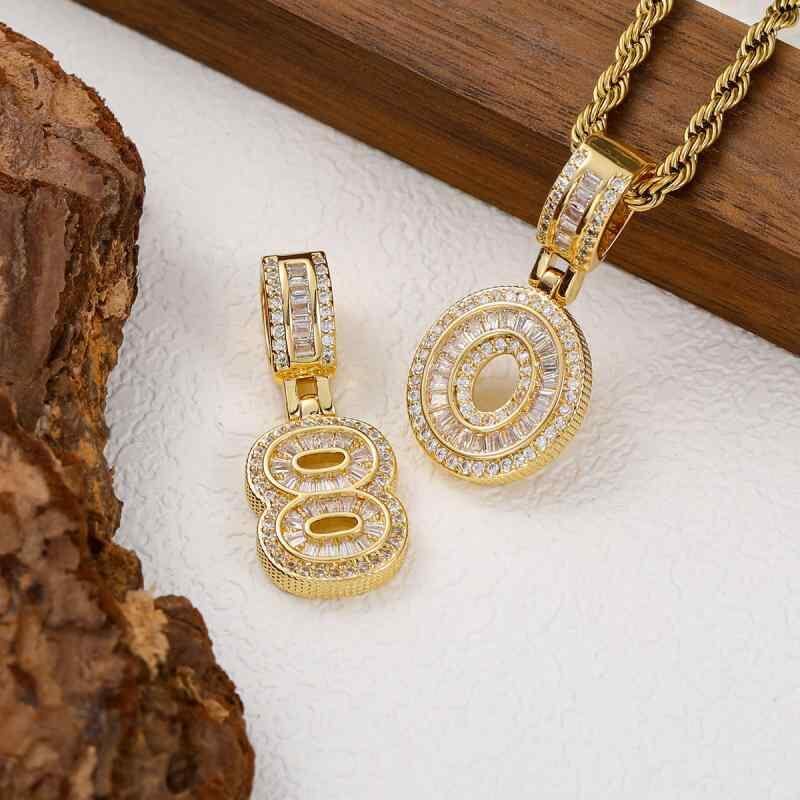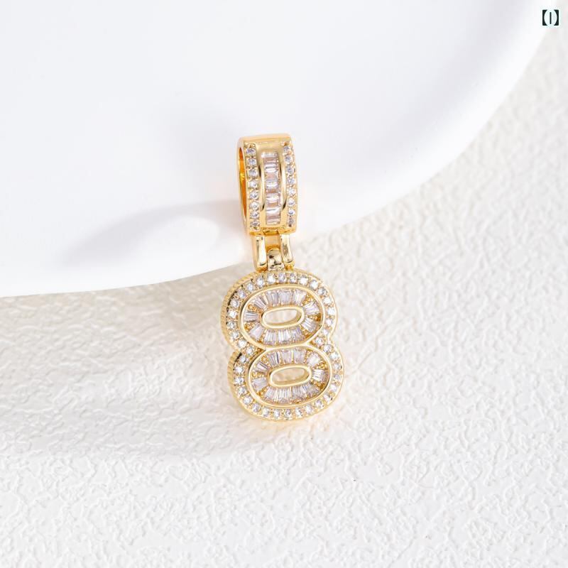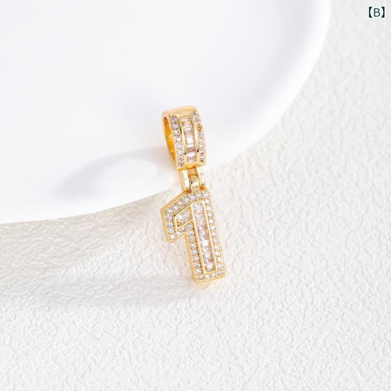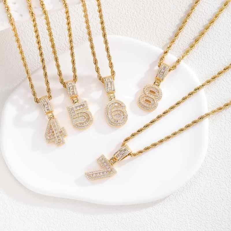 ネックレス ユニセックス ヒップホップ ストリート 欧米風 銅メッキ シュガーキューブ 数字 ジルコニア ラッキーチャーム ペンダント 個性的 パンク ファッション ツイストチェーン