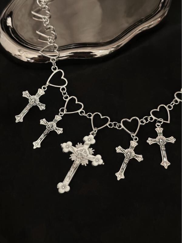 ネックレス Y2K パンク クール クロス ハート 透かし細工 チョーカー ペンダント シンプル 幾何学 モード ロック ゴシック ジェンダーレス 秋冬 デイリーユース 普段使い