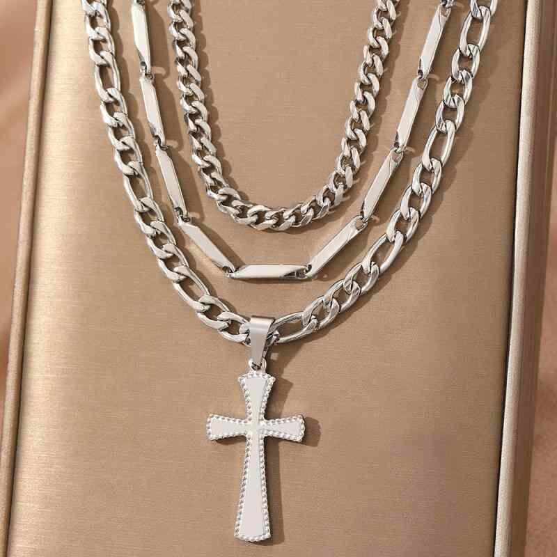 ネックレス ユニセックス ステンレス クロスモチーフ 多層 チョーカー パンクスタイル アクセサリー 重ね付け 普段使い カジュアル ファッション 幾何学デザイン 電気メッキ加工
