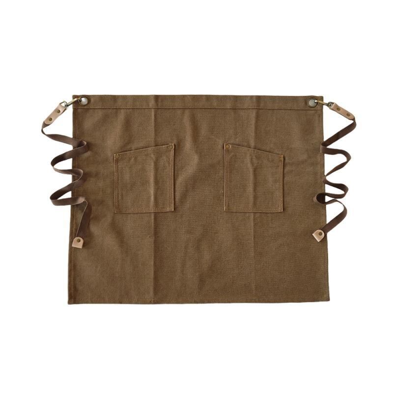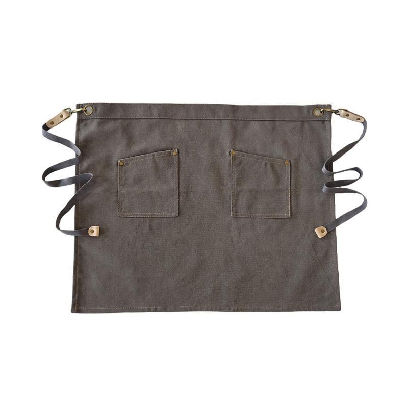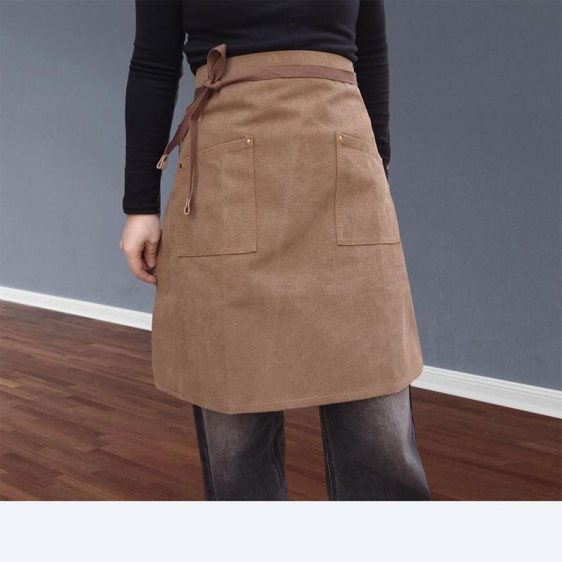 エプロン ショート丈 ハーフ丈 キャンバス 帆布 無地 防汚 汚れ防止 飲食店 カフェ レストラン シェフ 料理人 サービススタッフ ギャルソン 作業用 業務用 ユニフォーム 韓国風 カーキ ブラウン ダークグレー
