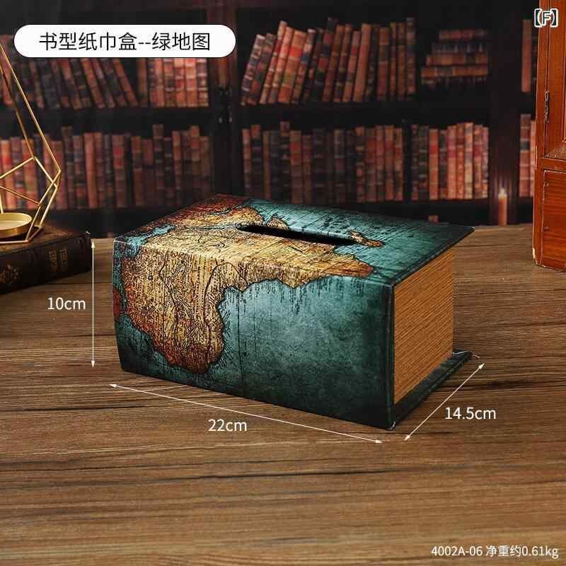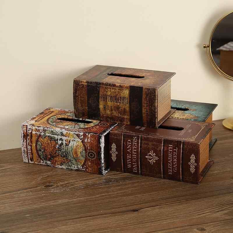 ティッシュケース ブック型 木製 PUレザー レトロ アメリカンデザイン 卓上 デスク オフィス リビング 書斎 フェイクブック 目隠し収納 おしゃれ インテリア雑貨