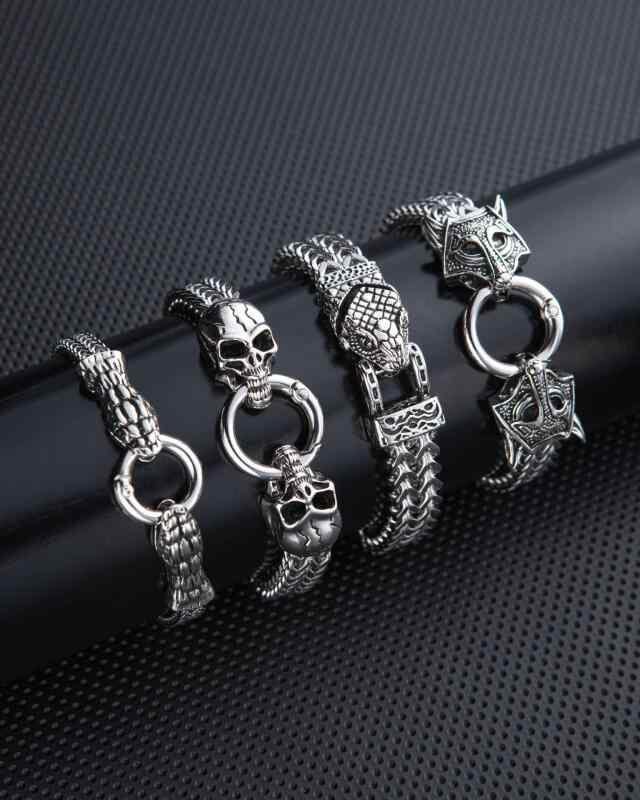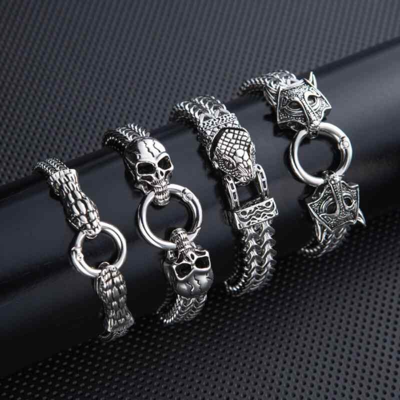 ブレスレット メンズ ユニセックス 欧米風 レトロ パンク ステンレス スネークヘッド 獣ヘッド スカル ウルフヘッド 合金 アクセサリー 色褪せにくい 電気メッキ ダーク 個性派