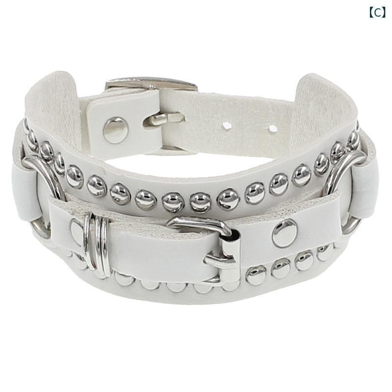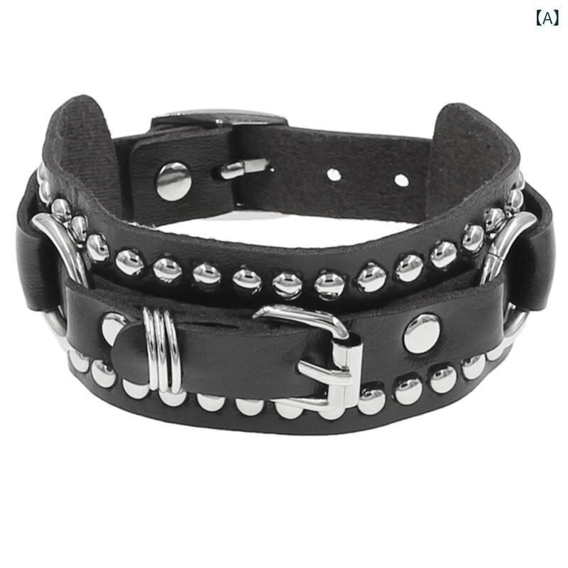 ブレスレット 男女兼用 欧米風 パンク ロック リベット スタッズ レザー 革 バングル 腕輪 ハンドメイド 個性的 ファッション おしゃれ カップル ペア ストリート ブラック