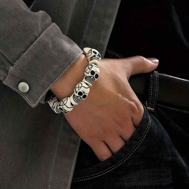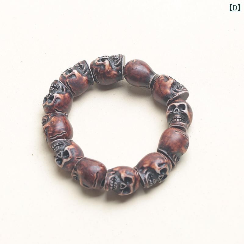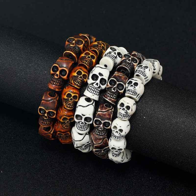 ブレスレット メンズ 男性用 スカル 樹脂 ビーズ パンク ロック レトロ カジュアル ヒップホップ ストリートファッション ハンドメイド アクセサリー 腕輪 男女兼用