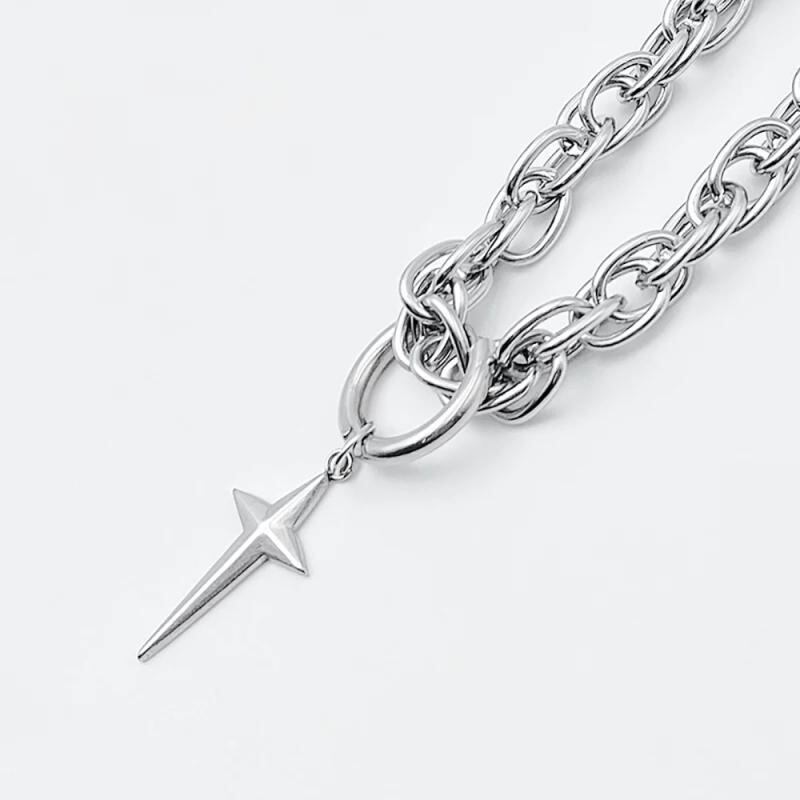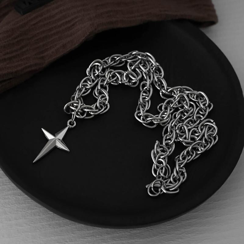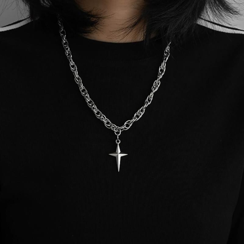 ネックレス 男女兼用 ユニセックス クロス スター ペンダント ツイストチェーン チタン鋼 変色防止 パンク ヒップホップ クール カジュアル カップル ペア 鎖骨チェーン 春夏