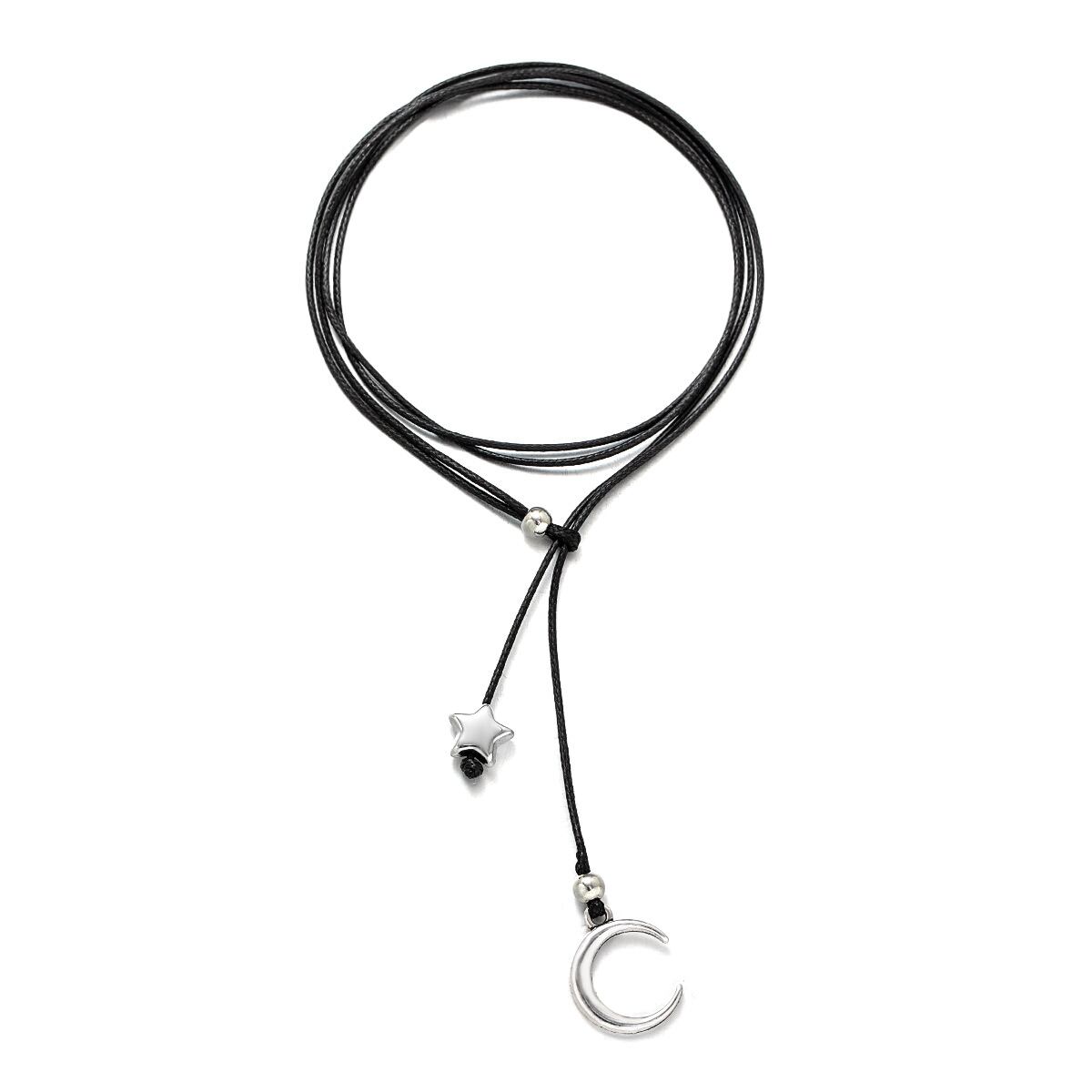アンクレット レディース 女性用 合金 星 月 モチーフ チャーム 調節可能 巻き付け ラップ 防水 ワックスコード 蝋引き紐 ブラック 普段使い カジュアル おしゃれ シンプル アクセサリー ジュエリー