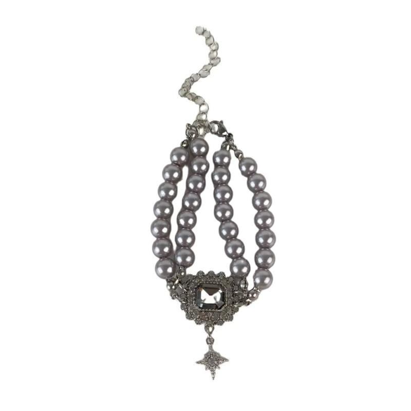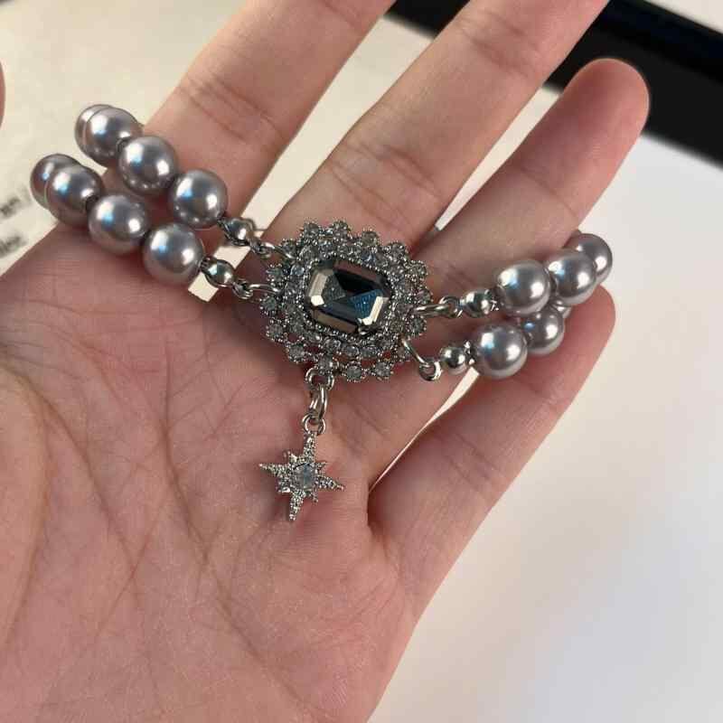 ブレスレット レディース パール ジルコニア レトロ パンク風 幾何学モチーフ 個性的 繊細 ガラスビーズ 合金製 電気メッキ加工 幅広いスタイル アクアマリン 秋冬