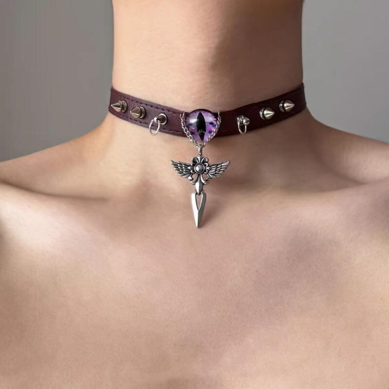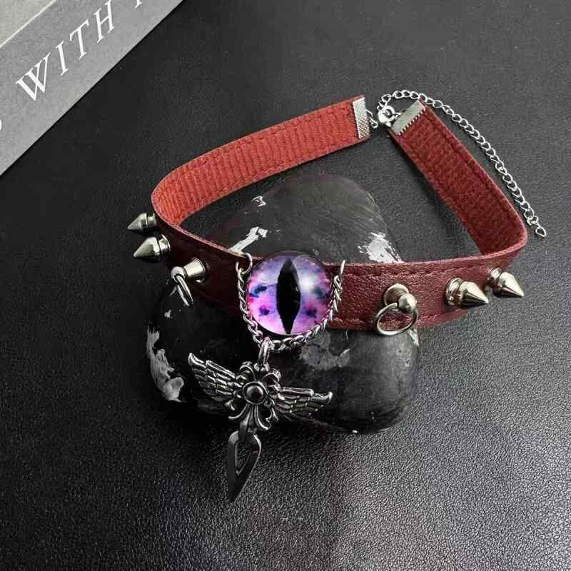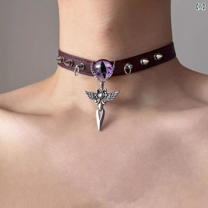 チョーカー ユニセックス ダーク系 ゴシック パンク デビルアイ 翼 スタッズ レザー 合金 樹脂製 電気メッキ加工 個性的 ファッション小物 アクセサリー ネックレス