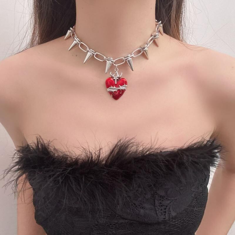 ネックレス レディース ゴシック パンク Y2K ヒップホップ サブカルチャー ハート スタッズ いばら 棘 チョーカー 合金 電気メッキ加工 個性的 おしゃれ トレンド クール 甘辛ミックス