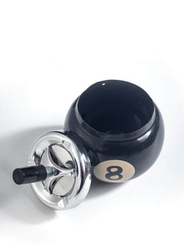 灰皿 ビリヤード デザイン 卓上 ポータブル 携帯用 金属製 厚手 耐衝撃 防風 灰飛散防止 オフィス ホテル リビング デスクトップ ブラック アッシュトレイ 喫煙具 収納付き ユニーク