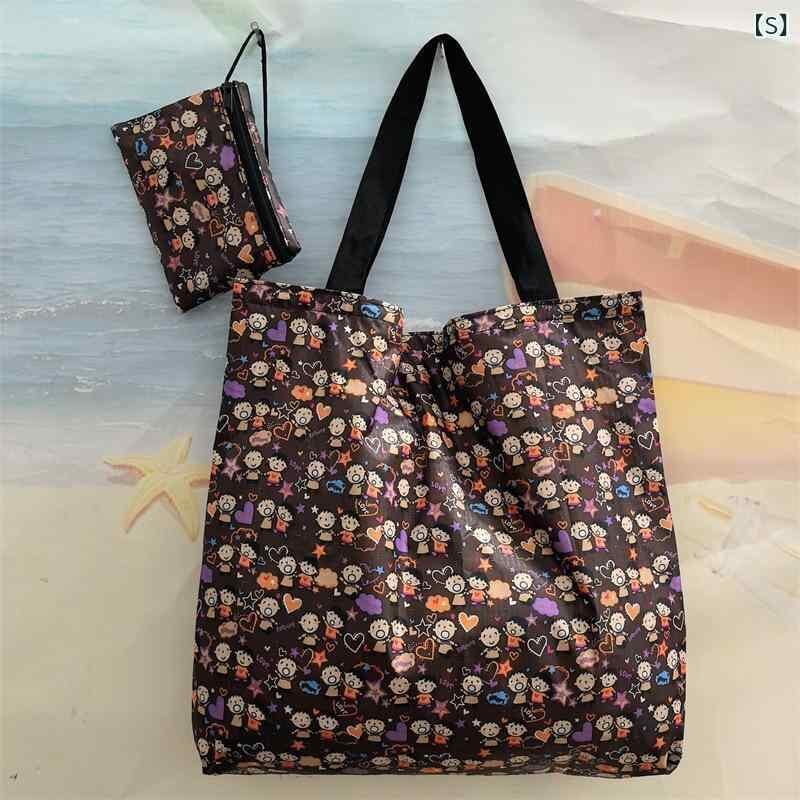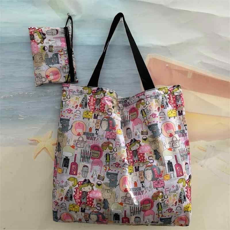 エコバッグ レディース 大容量 ファスナー付き 折りたたみ コンパクト ナイロン製 撥水 ショッピングバッグ 旅行 買い物 スーパー 携帯用 トート キャラクター