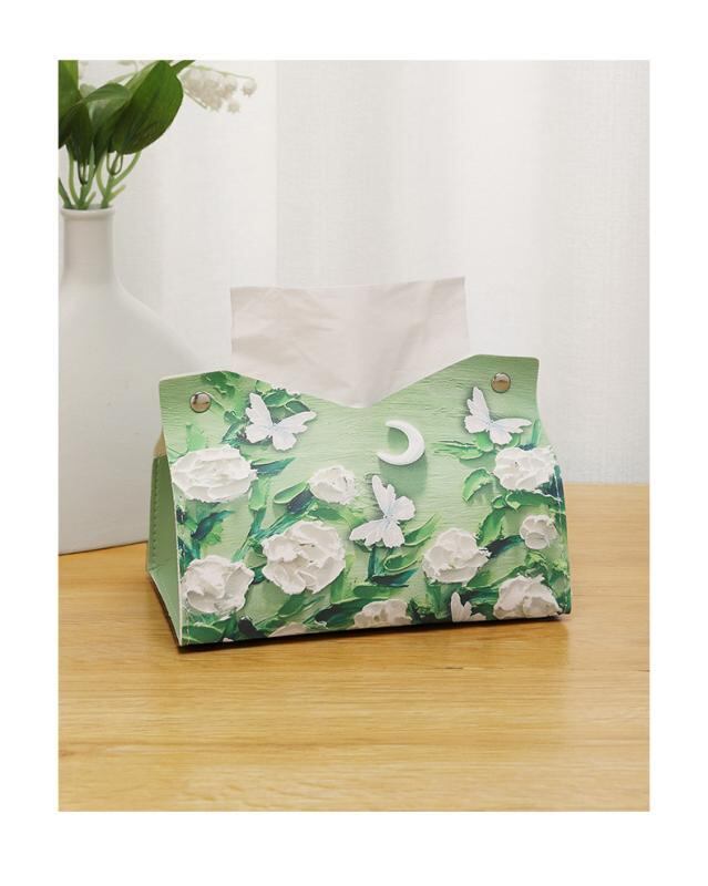 ティッシュケース レザー 油絵タッチ 花柄 ライトラグジュアリー 防水 多機能 リビング ダイニング 洗面所 オフィス 車内 デスク 寝室 収納ボックス おしゃれ 上品 インテリア雑貨