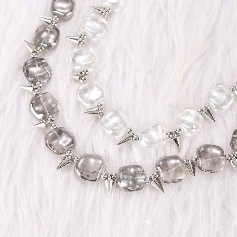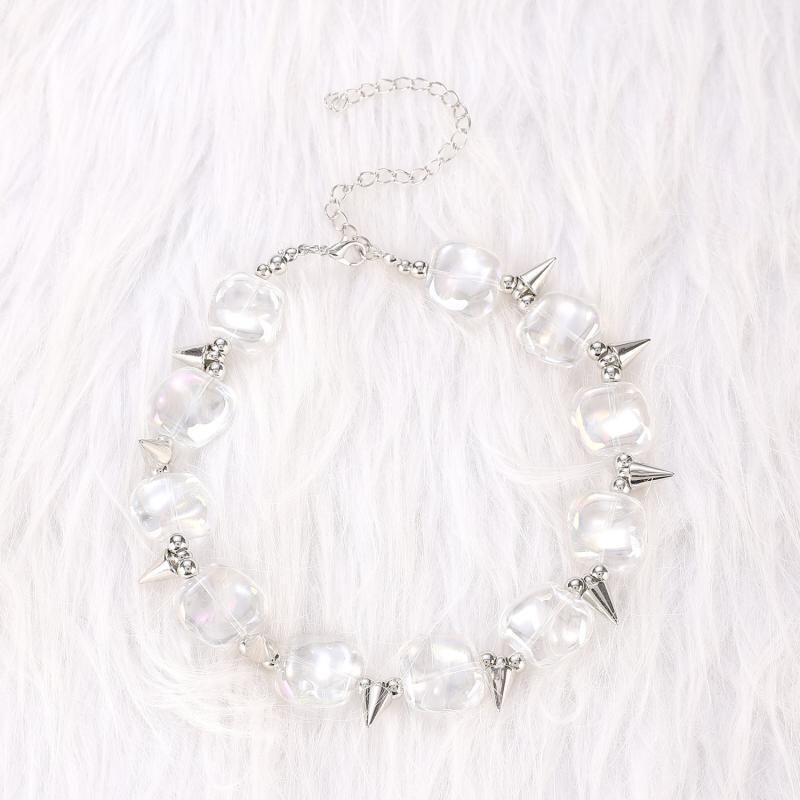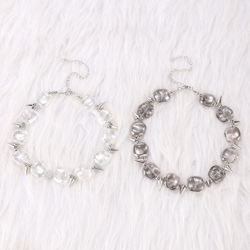 ネックレス レディース パンク ダーク ヒップホップ ストリート 個性派 ファッション スタッズ 切り替え 幾何学 ラウンド チタン鋼 アクリル ガンメタリック チョーカー