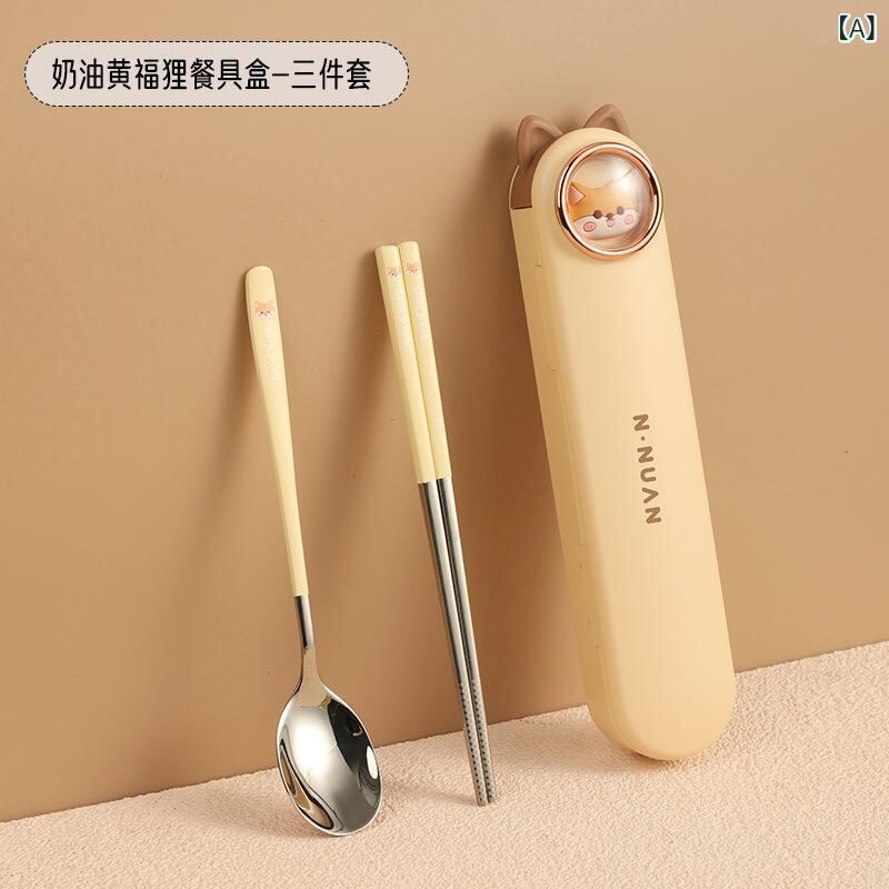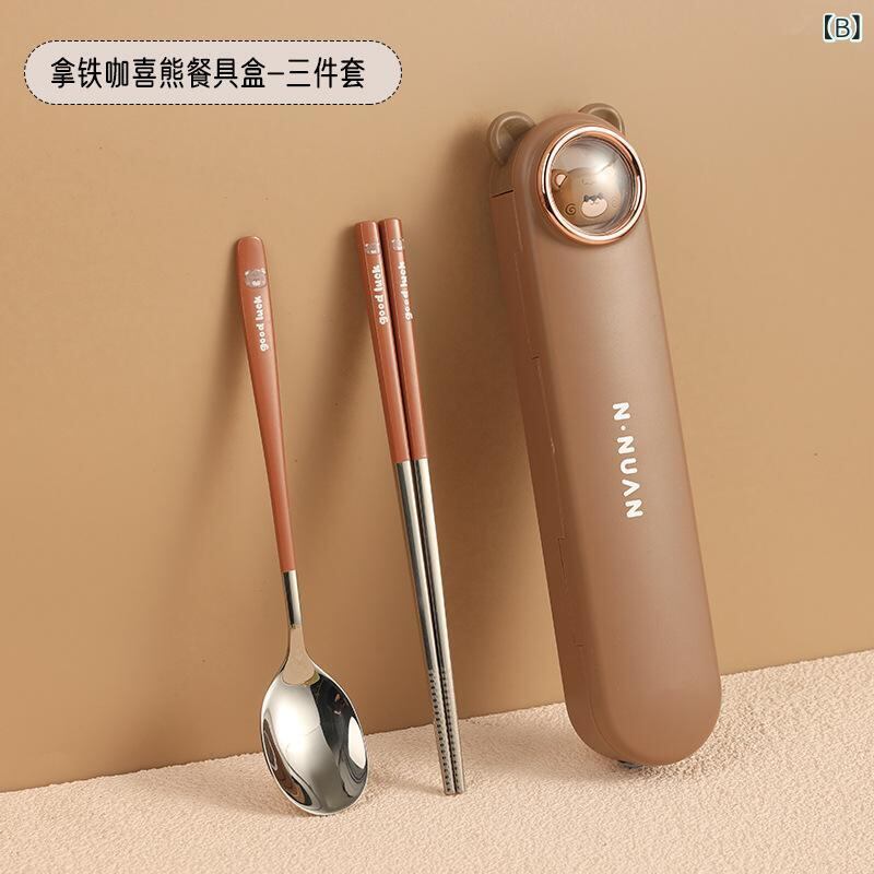 カトラリー 子供用 キッズ 学生用 お箸 スプーン セット かわいい キャラクター ステンレス製 携帯用 持ち運び ポータブル コンパクト 3点セット 専用収納ケース付き お弁当 ランチ 通学用